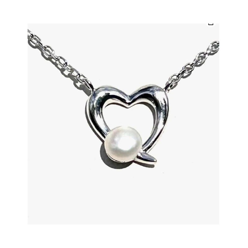 PRECIOSAS JOYAS CORAZON PENDIENTES, COLLAR, PENDIENTES CON PERLAS CULTIVADAS MONTADAS EN PLATA DE LEY IDEALES COMO REGALO O EN CUALQUIER OCASION O EVENTO ESPECIAL