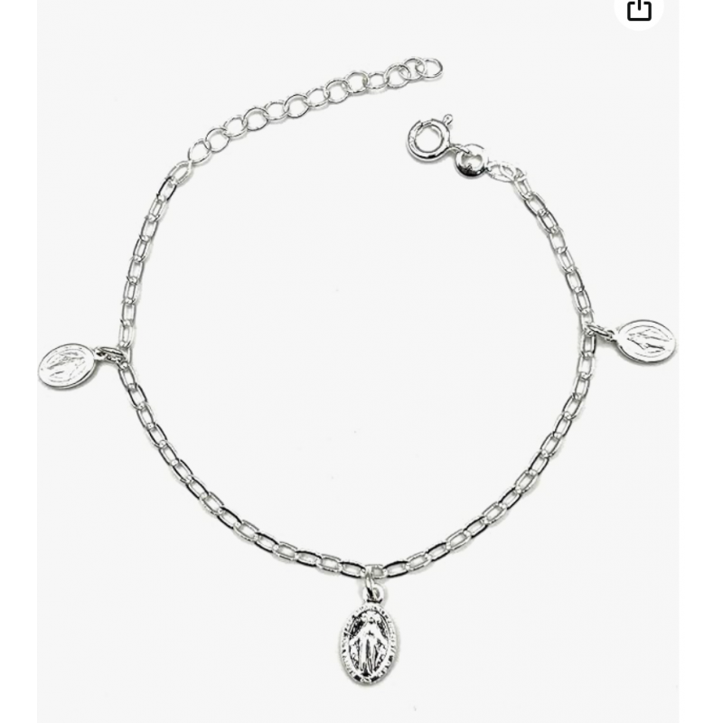 VIRGEN MILAGROSA EN PLATA DE LEY (PULSERA TRES MILAGROSAS COLGANTES)