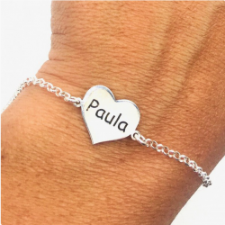 PRECIOSA PULSERA CON NOMBRE PERSONALIZADO "CORAZÓN" PARA TODOS LOS ENAMORADOS, FABRICADA EN PLATA DE PRIMERA LEY 925 MLS. EN ESPAÑA.