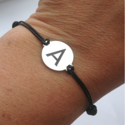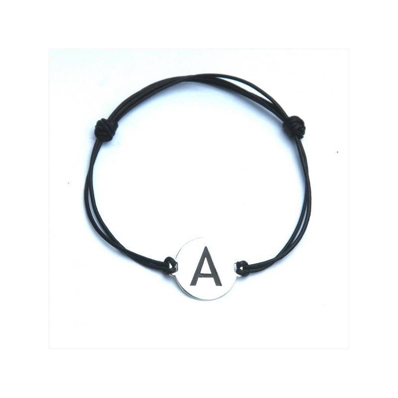 PULSERA DE LETRA EN CUERO NEGRO, FABRICADO EN PLATA DE PRIMERA LEY (925 MLS). HECHO EN ESPAÑA.
