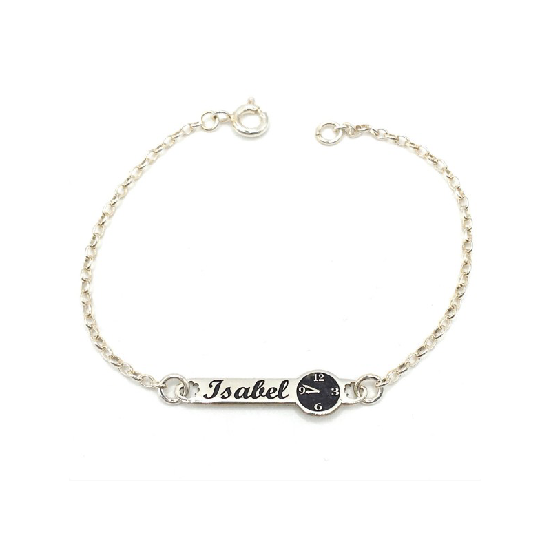 Pulsera de plata de Ley (925mls), puedes elegir el nombre y hora que quieras, un regalo personalizado que encantará, puedes hacerla a medida.