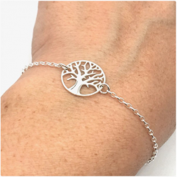 Pulsera rolo ovalada fina y muy bonita con el árbol de la vida centrado de 1,7 cm, 19 cm de longitud y cierre de reasa.