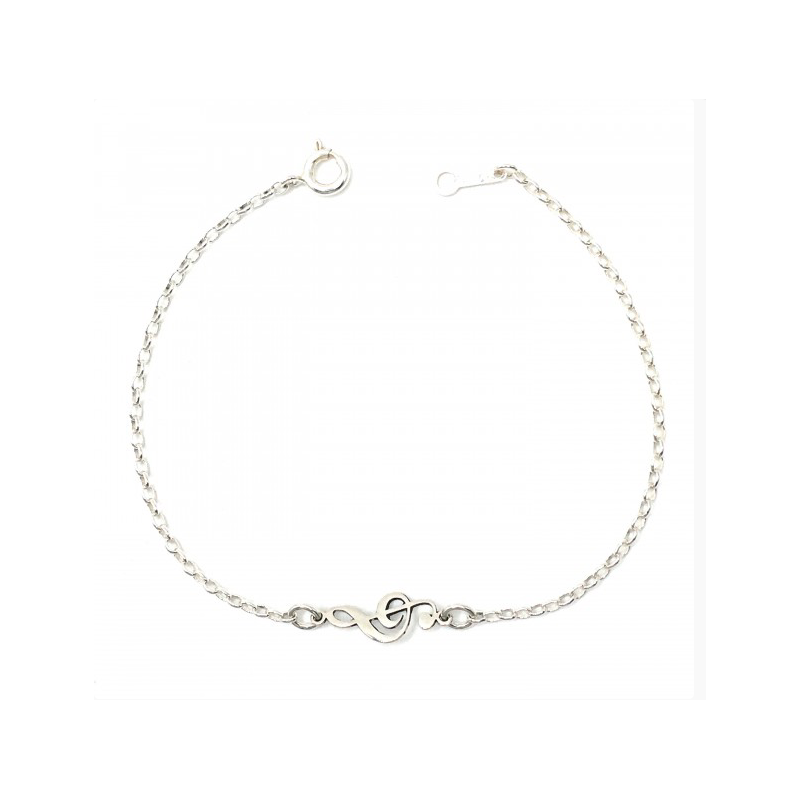 Para amantes de la música, una pulsera con eslabón rolo ovalado y en medio una Clave de Sol de 1,5 cm.