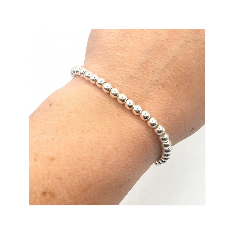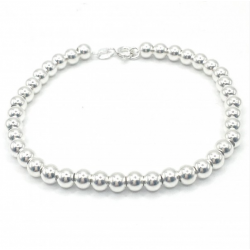 Esta pulsera de moda esta llena de bolas de plata de 5mm, montada sobre cadena de Plata, tiene una medida de 18,5 cm acabada con un cierre de reasa. HECHO EN ESPAÑA