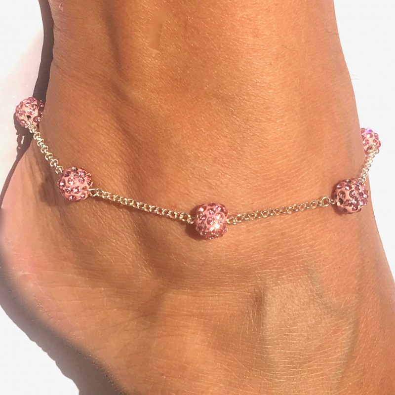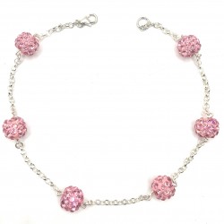 TOBILLERA DE PIEDRAS ROSAS FABRICADA EN PLATA DE LEY 925/1000 POR NUESTROS ARTESANOS EN ESPAÑA.