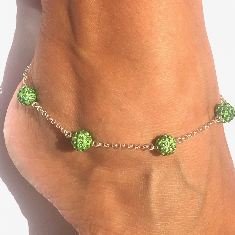 TOBILLERA DE PIEDRAS VERDES FABRICADA EN PLATA DE LEY 925/1000 POR NUESTROS JOYEROS EN ESPAÑA